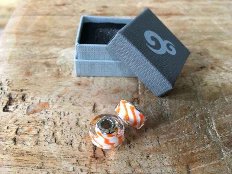 During Beadbash on the Lake hosted by Great Lakes Boutique I got two Ohm beads unreleased glass. I was hoping to combine them with the Latte and Bacon glass beads, but I did not have a defenete plan.