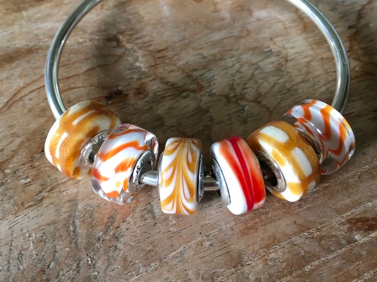 But when I first saw Sugar Sleigh Ride 2.0 I immediatly saw a sugar candy kind of bangle with the orange stiped glass!