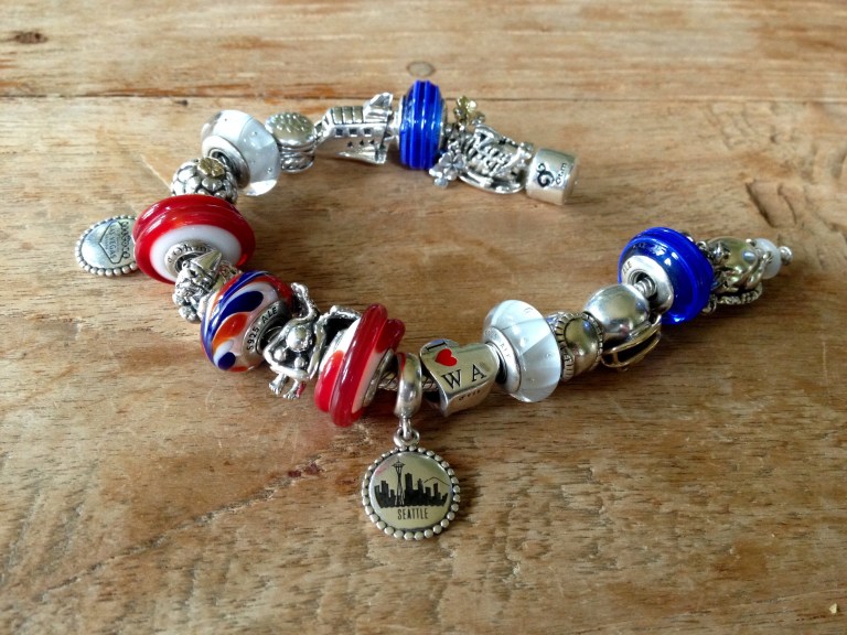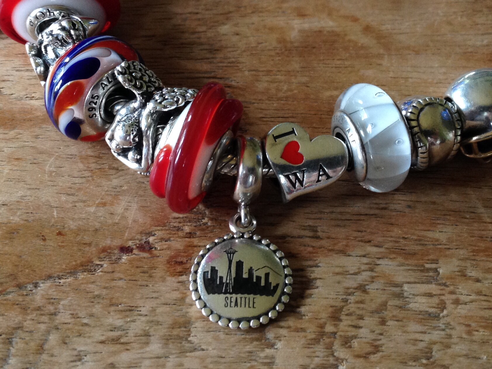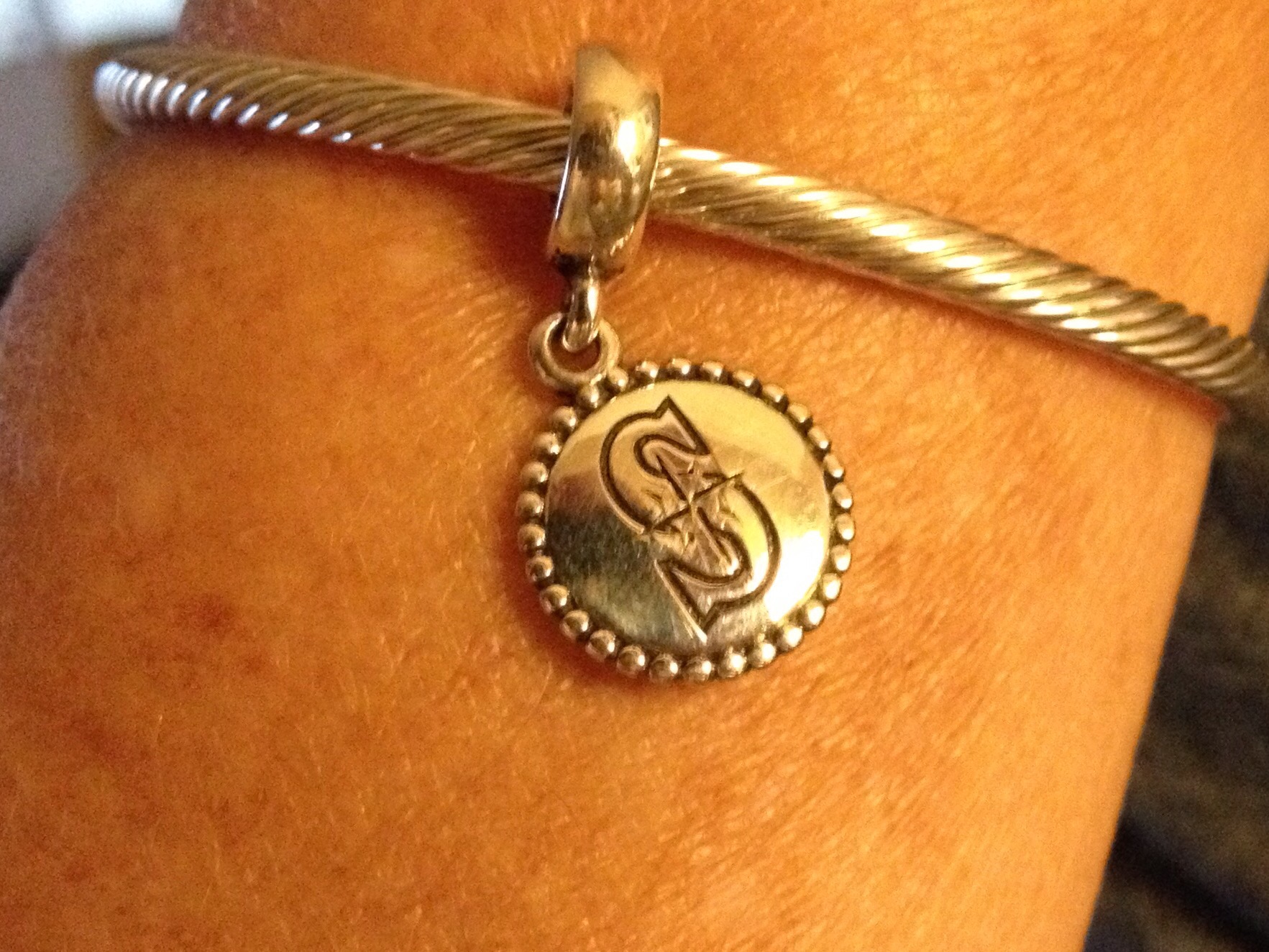 And I bought a Pandora Seattle dangle last year! This is the logo of the Seattle Mariners, but the fun thing is it is also my husband’s initial! He already had a sweatshirt with this logo and I always teased him with his monogramed clothes.