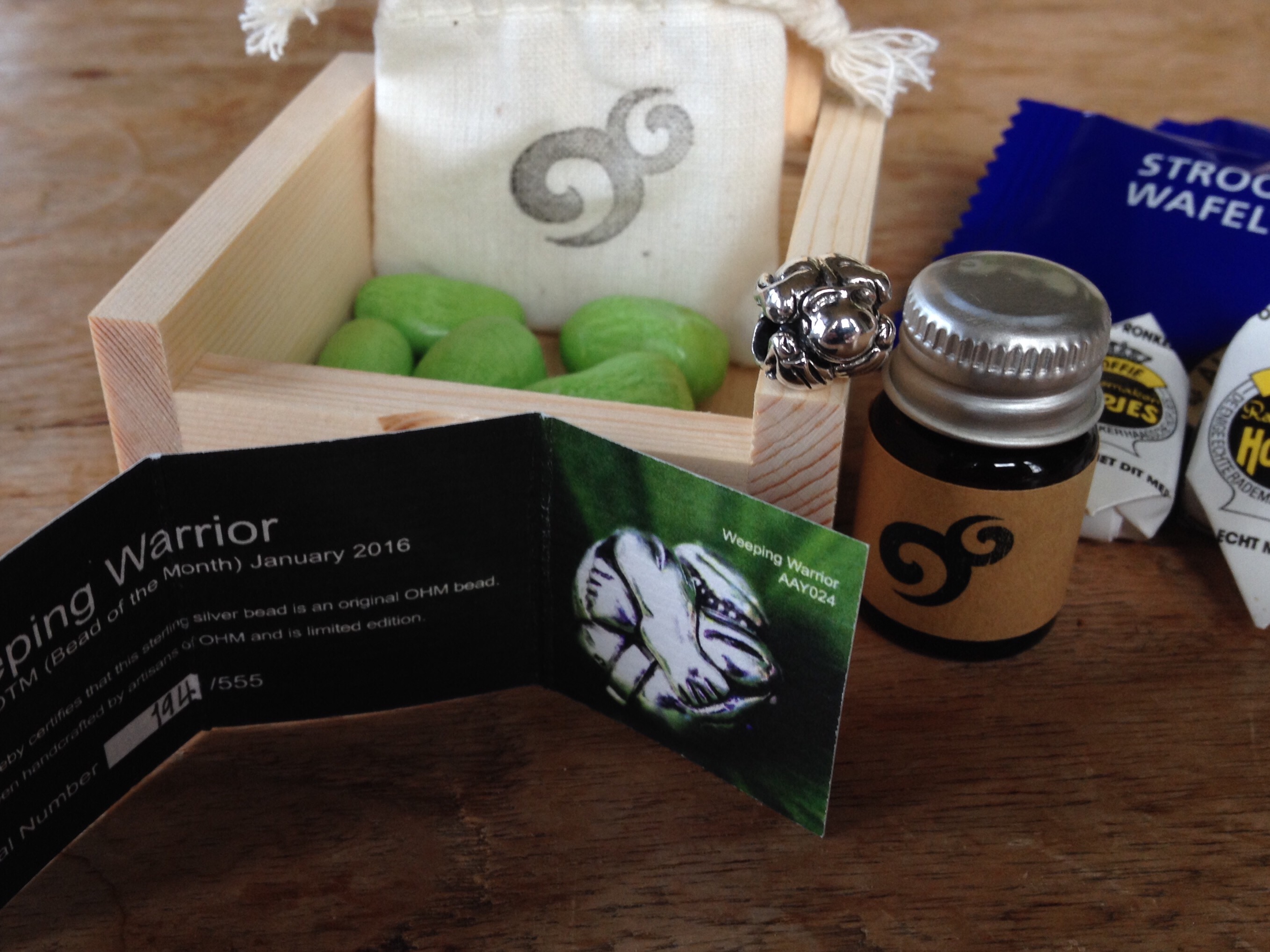 Added the Ohm beads Weeping Warrior, bead of the month january 2016. The story that he takes your sorrow away when you stroke his back is so appropriate for this bracelet! I really do strike his back from time to time!