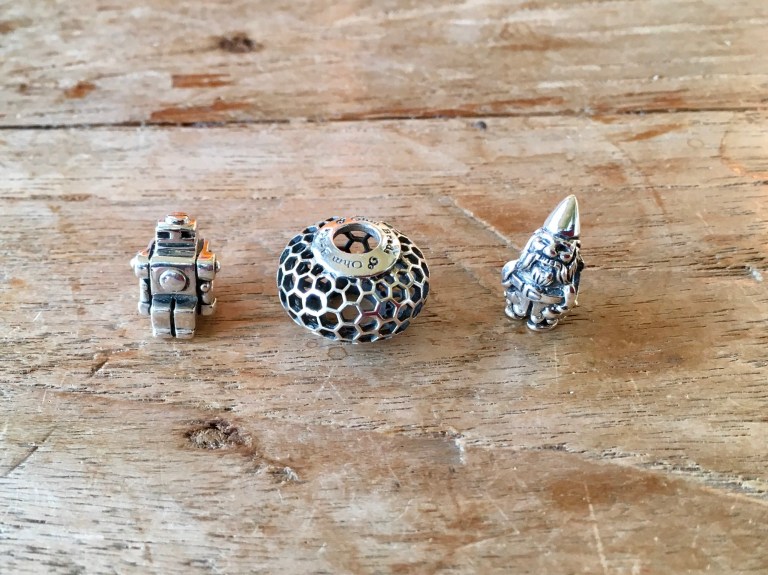 Among my buys are the long retired Robot Kit brought with him! So happy to get him! And a second silver Hive Mind Bead of the Month August 2016. I really wanted a second one to make symmetrical bangles. And I got Ohmgnome! I did not have him myself and I missed him after Traveling Ohmgnome left for London!