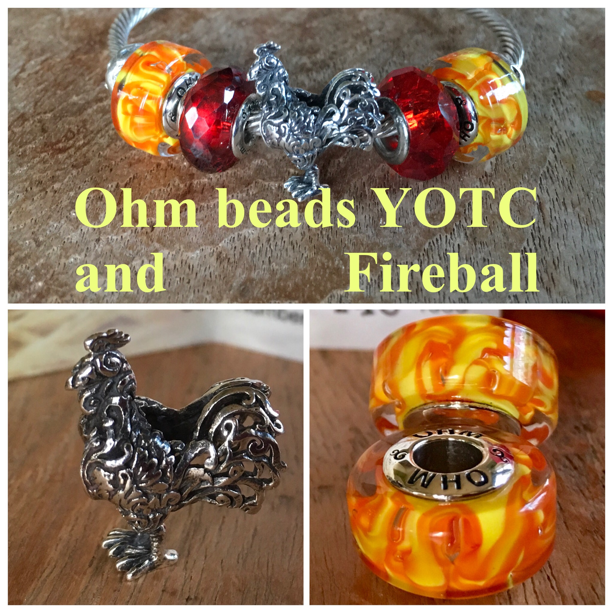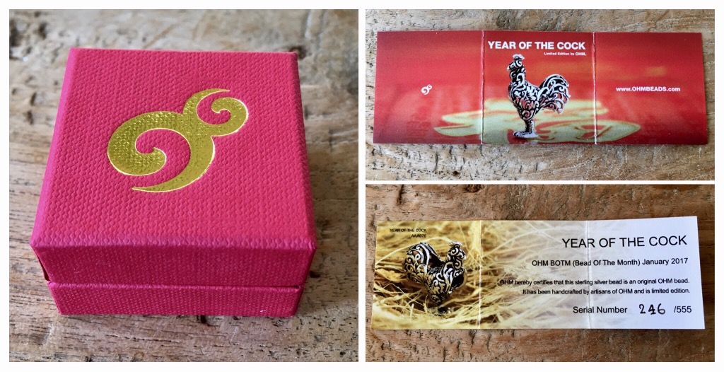 I bought the Bead of the Month Year of the Cock and two Fireball limited edition glass beads. It is the year of the Firerooster! I love the stories Ohm beads add to the beads! This is the story of the Rooster taken from the Ohm beads website: