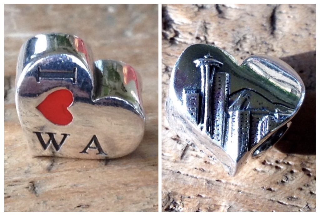 Ohm beads I ❤WA with the Seattle skyline on the back.