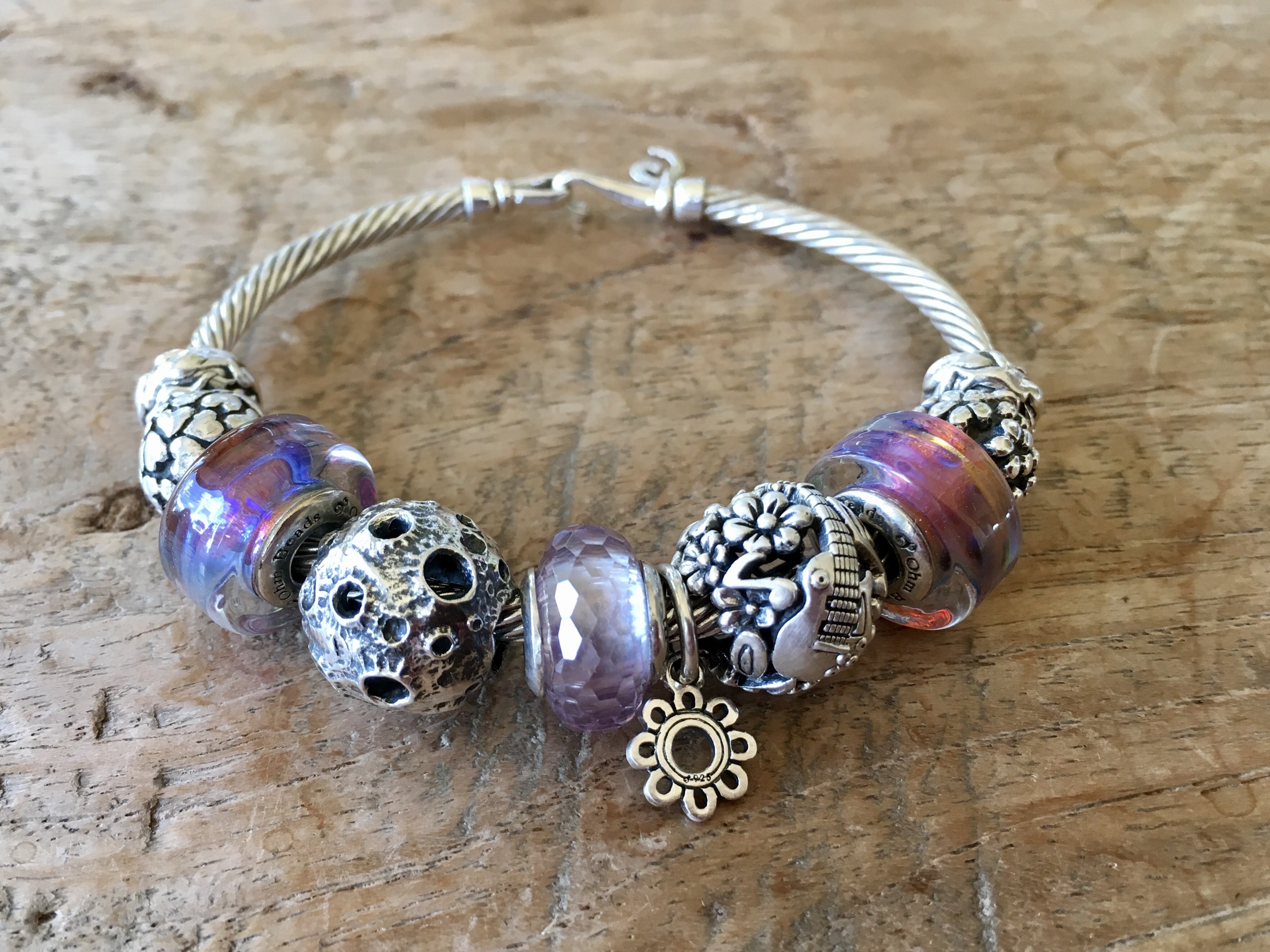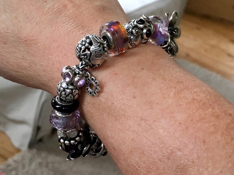 I had the hearts and flowers beads from Pandora, perfect! The Ohm beads Purple Haze is by far the most perfect to go with the theme!