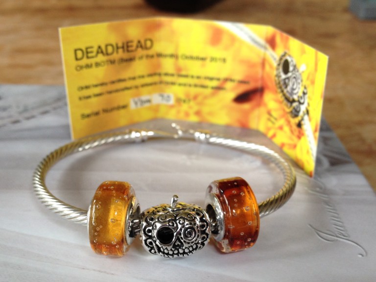 This way I can add an extra bead to a theme. Sometimes the bead fits into the theme, but I cannot get the bead to fit onto the bangle design. And this stacking enhances the theme I think!