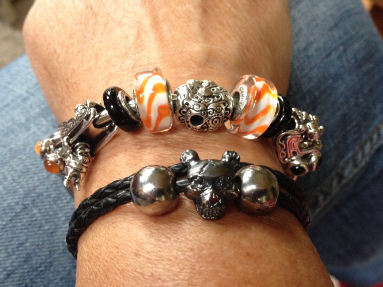 And then I made this stack for Haloween. It set the tone for a new stack design: bangle with the leather with just one focal bead.