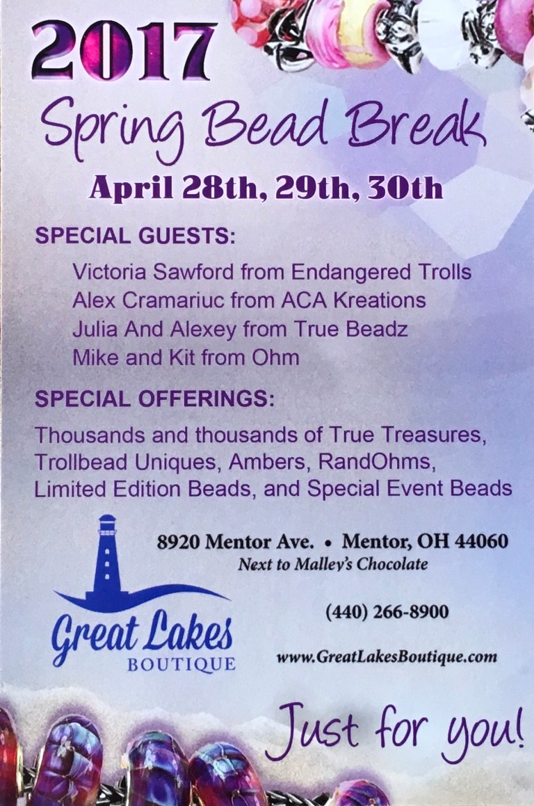 Finally, after months of waiting, this weekend is Spring Bead Break at Great Lakes Boutique!