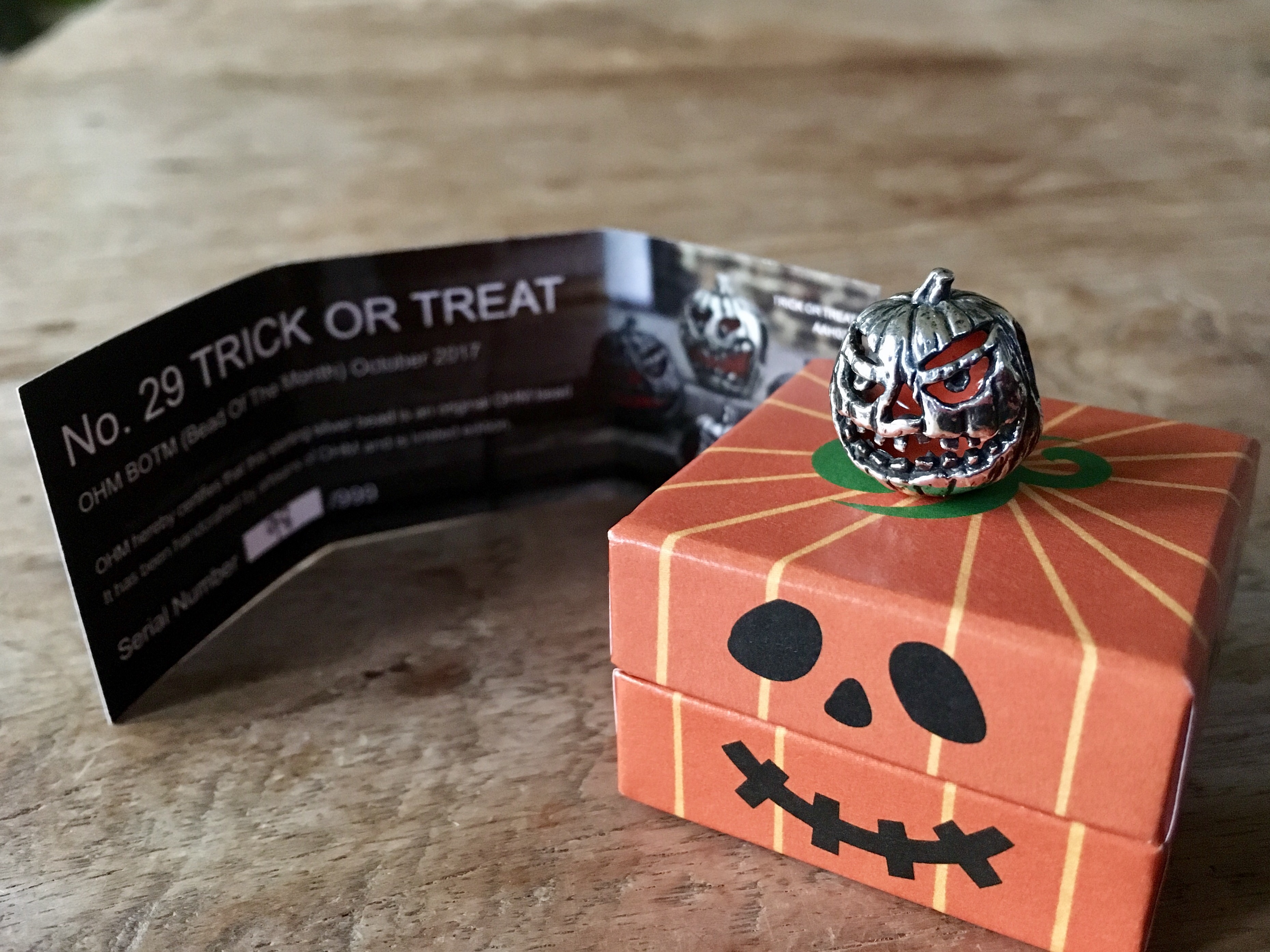 Ohm beads released in the series Bead of the Month (BOTM) for October Trick or Treat, a pumpkin!