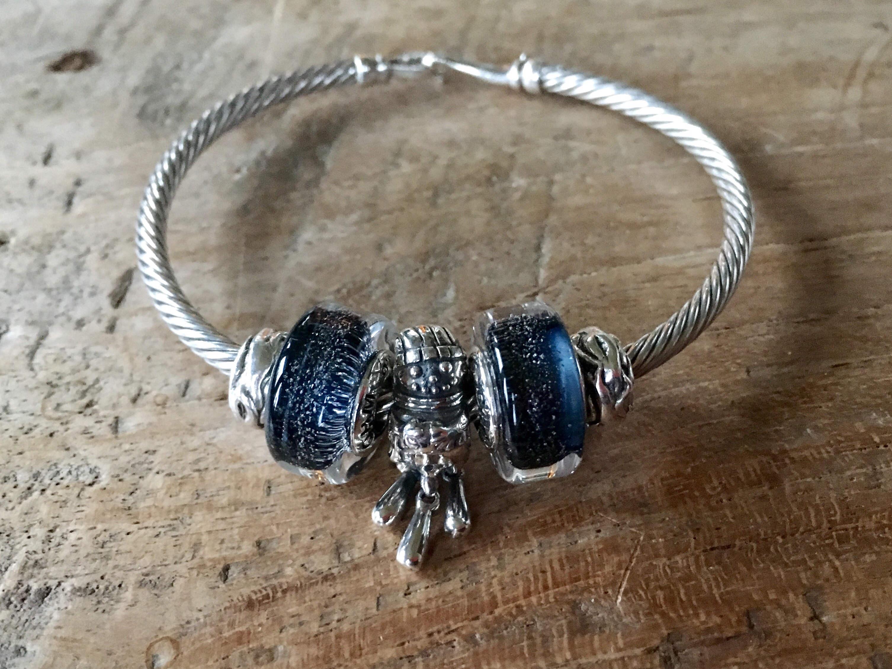 Here is another bangle design Winter Fun with You Melt Me, Snowflake, the Sugar Sleigh Rides and two Pandora topaz cabochons.