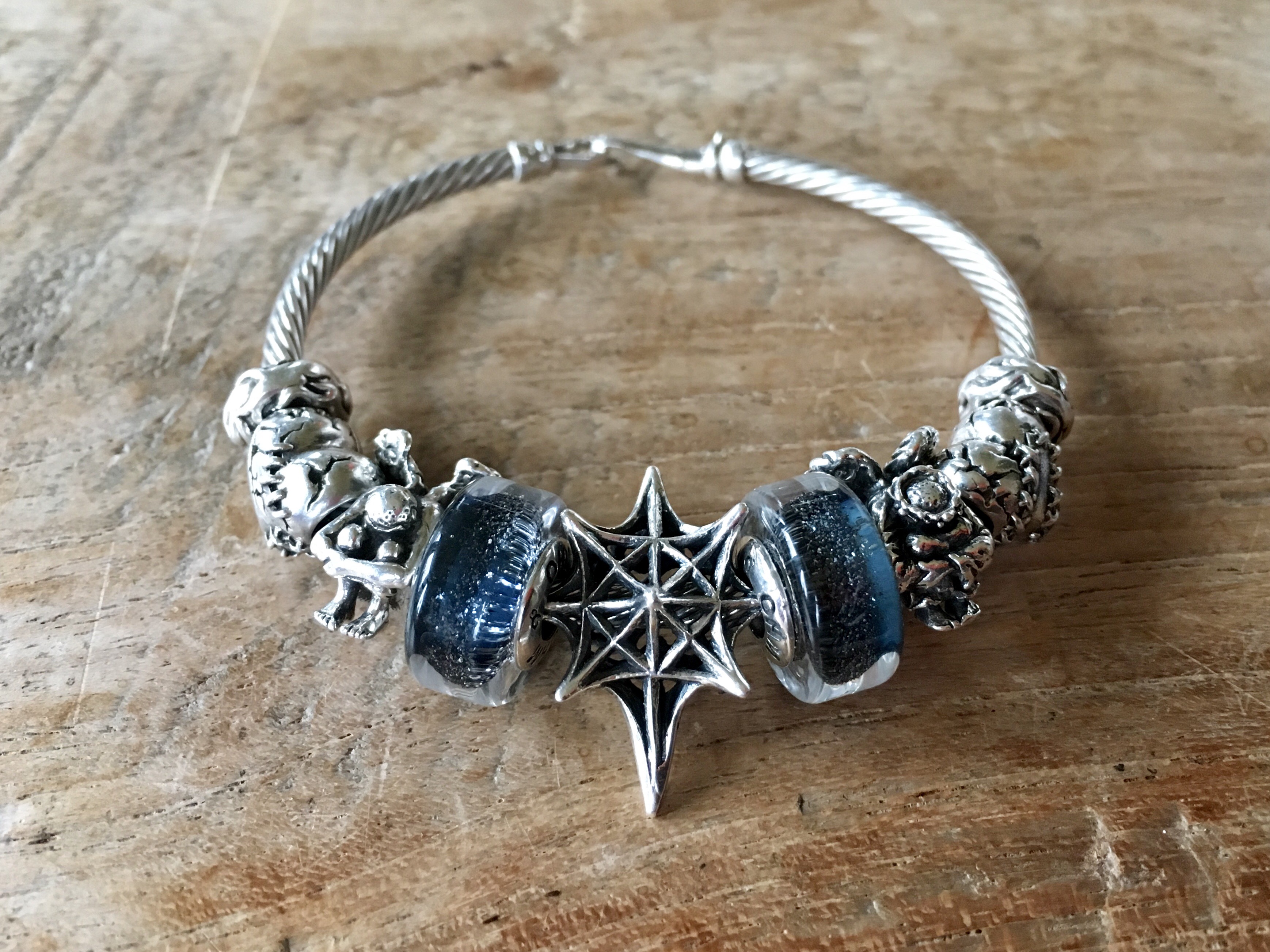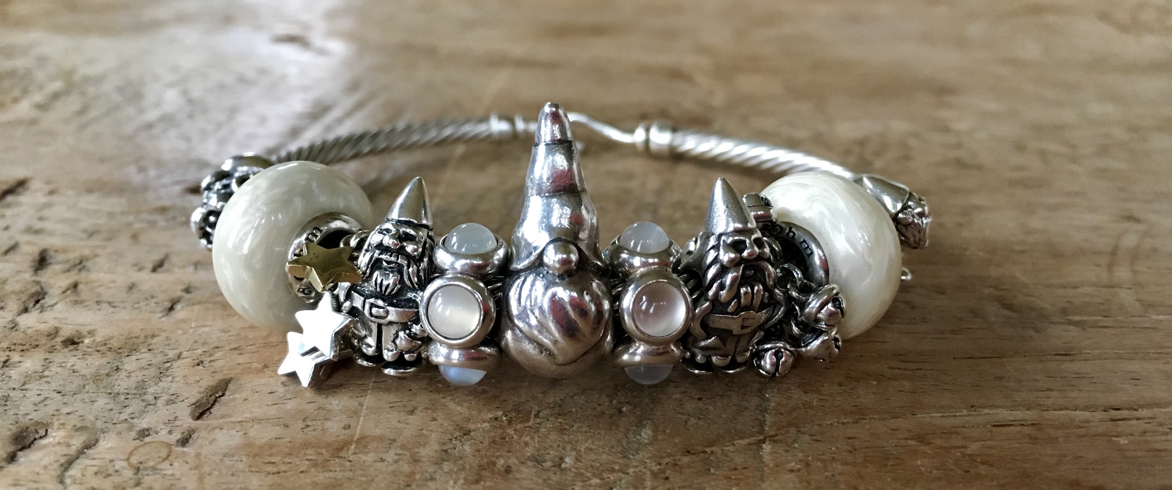 Stacked with the Gnomes Winter Wonderland bangle. From the left Hear the Troll from ACA Kreations, Ohm beads Lucky Stars, special edition for Star Bijou and to the right Ohm beads Jingle Balls.