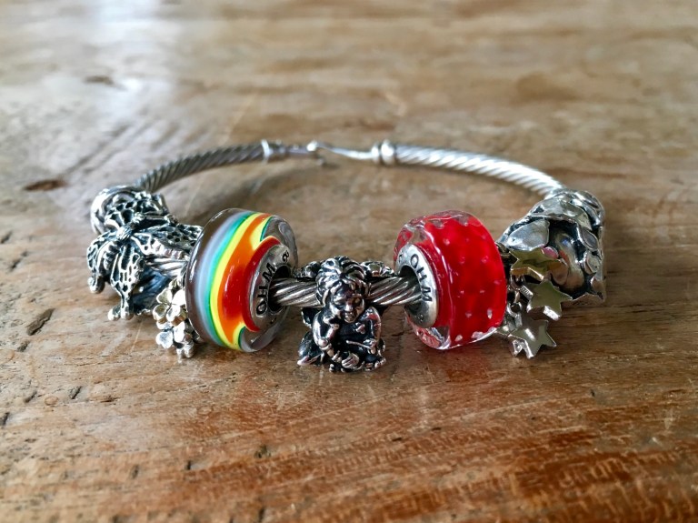 And I have been wearing him on my Silent Night bangle. I could not take that one apart yet, I loved it too much! He sits so nice next to OhmMyGod!
