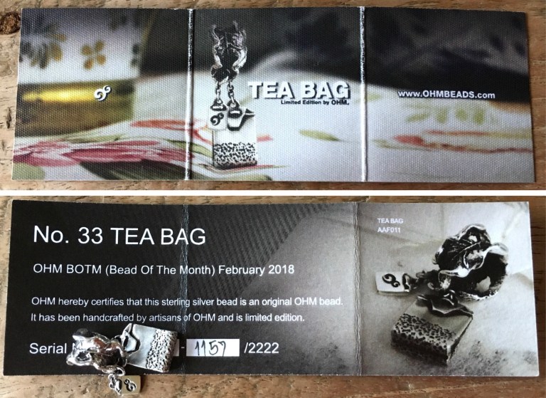 The Ohm Beads Bead of the Month February 2018 is Tea Bag. I think a lot of us drink tea, maybe at breakfast or an afternoon high tea. So it will appeal to a lot of people!