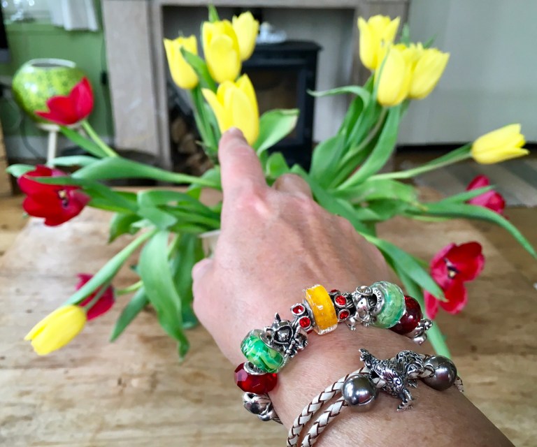 These tulips I bought last weekend inspired me, time to make some spring bangles.