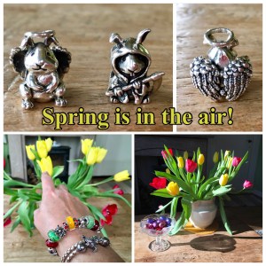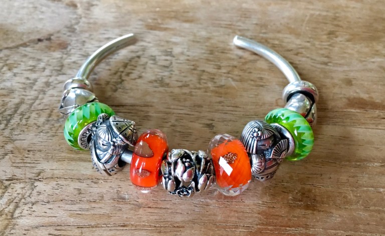 I think orange is a beautiful spring colour and the Spiritbeads Little Miss Sunshine and Kokeshi’ Fan think so too! With Ohm beads Tulip, Going Dutch Tulips and Trollbeads Dutch Tulip together with Pandora green glass and Trollbeads Oranje Boven and Royal Orange.