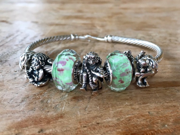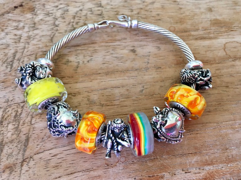 Stacked with a Trollbeads bangle with the Spiritbeads Kokeshi’s Fan and Little Miss Sunshine, Trollbeads OOAK and Pandora glass and silver beads.