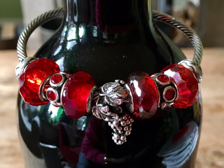 And ofcourse red wine. Here I made a bangle with red facet glas. Stacked with The Feast and a leather beer themed bracelet with True Beadz True Pint, two Hive Mind and two Hipster Hops. On a Pandora leather bracelet with Pandora clips.