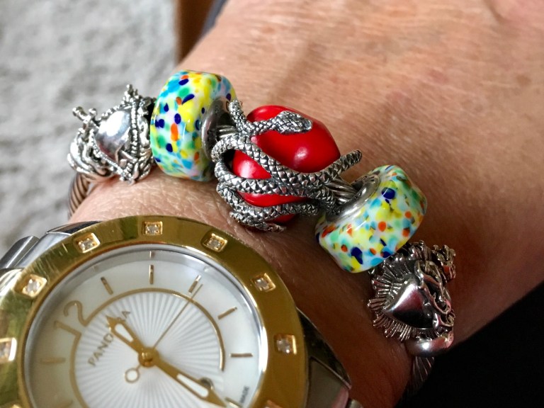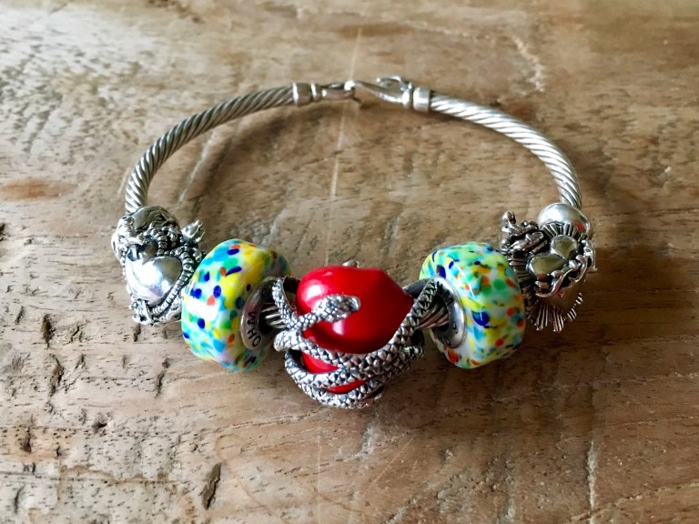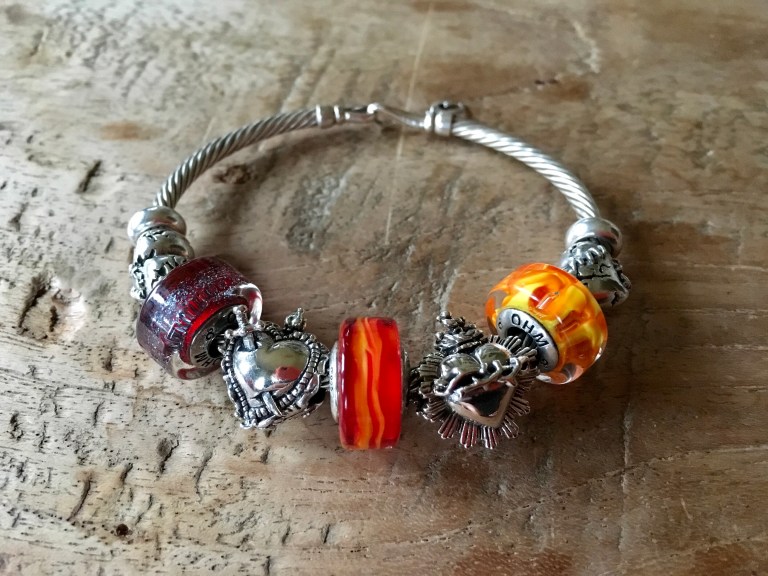 First I made a bangle with two Love Hurts, Dragon’s Breath, Sacred Heart, Ohmnique, Sacred Heart 2.0 and Fireball.