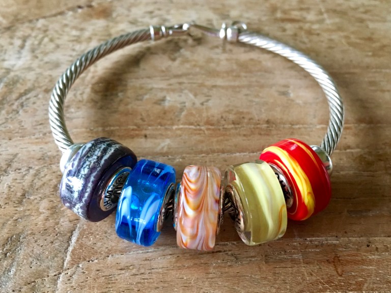 Five glass beads, happy to say not limited editions so part of the regular collection. Glass beads are an important part of bracelet design! They add additional texture, colour and can add to the theme you want to create. These glass beads in the Building Block collection are named after elements of nature.