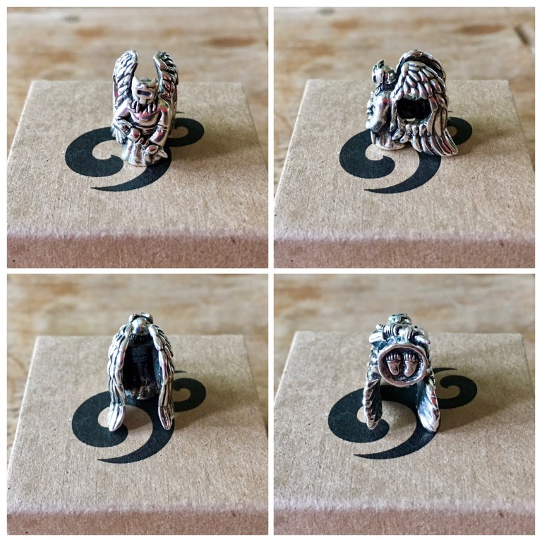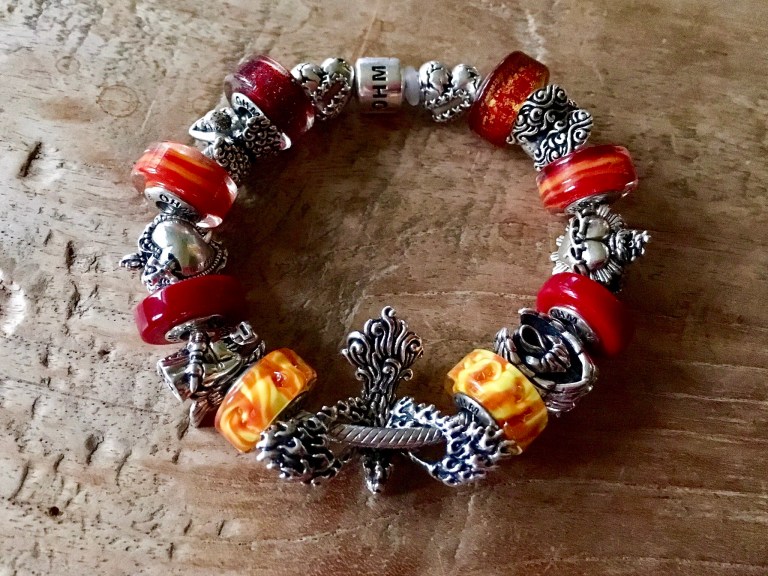 With the element of Fire also comes the gorgeous Phoenix! I wanted to combine this beautiful bead called Rebirth with the angel theme. A bangle with Sacred Heart, Slim Sour, Archangel Mikael, Fireball, Rebirth, Fireball, OhmMyGod 4.0, Slim Sour and Sacred Heart 2.0.