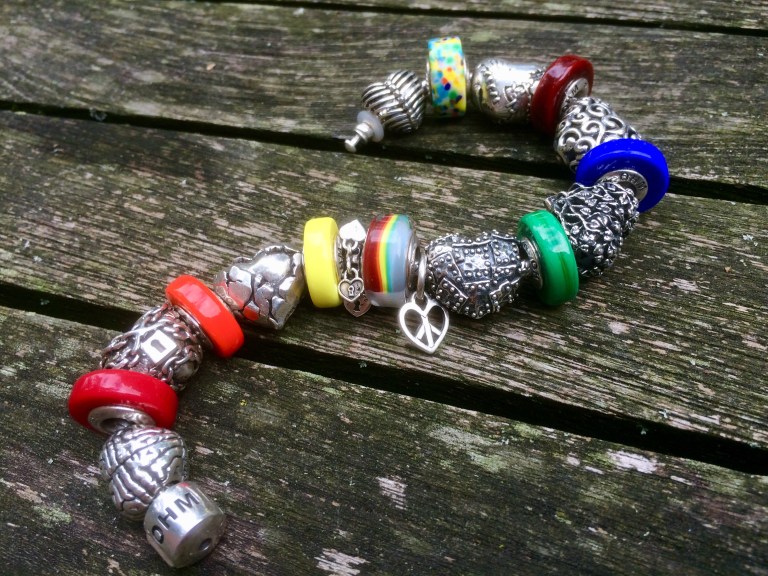 And I made a full bracelet with my other OHM hearts! On a OHM bracelet with Reason and Feeling, Sour, Open Your Heart, Koi, Heart Of Stone, Sun, Jingle Locks, Rainbowed, Woodstock Love, Mended Heart, Lawn, Love Grows, Deep, Love Whirls, Path, Love Hurts, Confetti Upchuck and Love Cage.