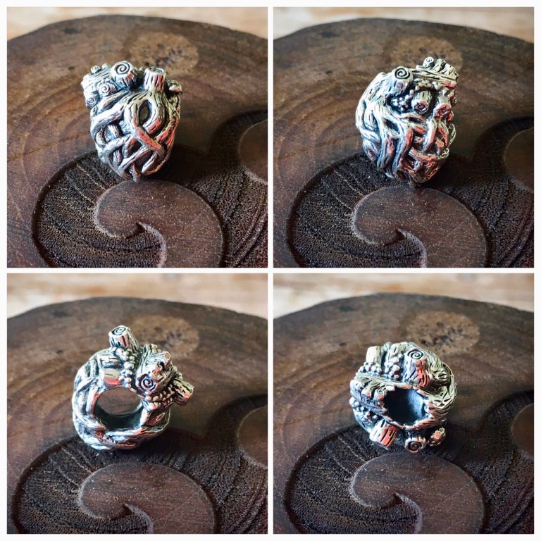 OHM bead’s story to accompany the bead is also very moving: “A tree keeps many deep and silent secrets. It grows slowly over centuries — bending and bracing against the storms — birthing, then losing, its leaves through the changes of the seasons. A tree bears witness to the lifetimes across eons — from the ancient age of elves and unicorns and the first children of men — to the passing of kingdoms, wars, industry, and skyscrapers. A tree is often used without thanks, carries its burdens without complaint, and sacrifices itself to shelter lesser life. Every tree presses its gnarled fingers deep into the dark earth, to hold a steadfast grip and draw nourishment up from the secret depths through its tangled veins. Every tree has a beating heart hidden beneath its roots that throbs with the wordless songs of life eternal.”