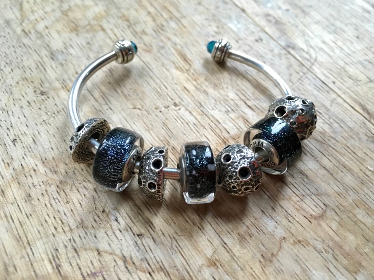 Space themed bracelets are among my favourites and I just had to start with the Moon beads. Crescent Luna, Quarter Luna, Gibbous Luna and Luna for a simple yet powerful bangle!