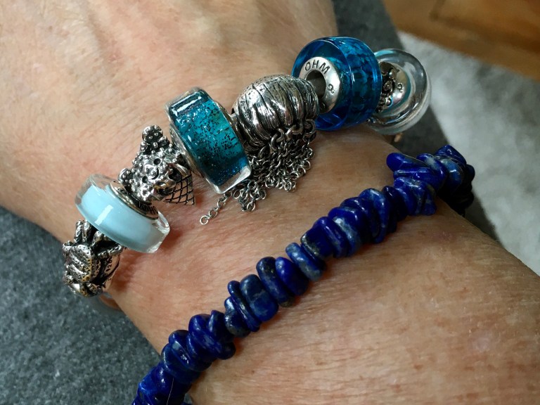 Let’s go to the beach! I love an ice cream on a beautiful beach! Blue C bangle with Alaska King Crab, Rise, Sweectus, Reef Dust, Jamie the Jellyfish, Great Barrier Reef, Scuba, Wisp and Life’s a Beach.