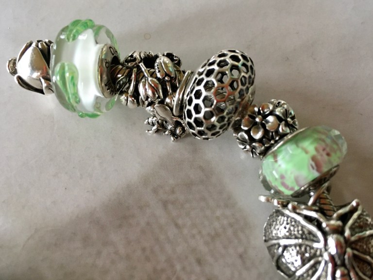 I made a full bracelet with flowers and leaves and butterflies and bees! This bracelet shows how great Big Fat Killer Bee fits in with the natural OHMverse!