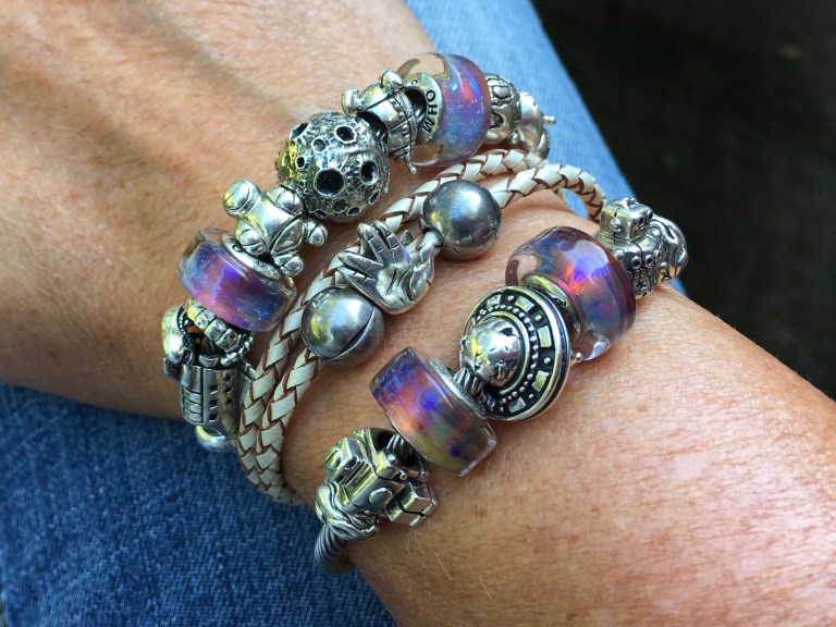 My very first OHM bead was Cute Ufo back in 2014! I had seen that kind of bead before with other brands! And Live Long and Prosper soon followed! I now can have my fascination for SciFi and space on my wrist and look at it all day! My space bracelets have been growing over time and I love them!