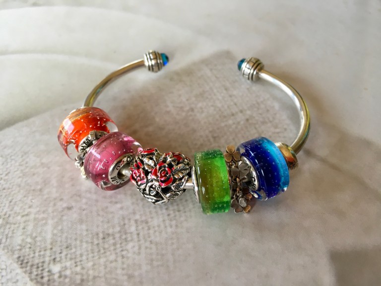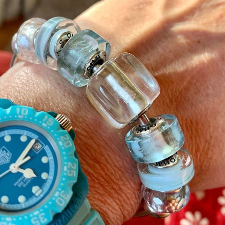 I know I have shown you this before but this bangle is one of my favourites. I love how the glass of this April release can be combined together. The other dark blue glass is Blueberry and the Slim glass in the middle is Hole!