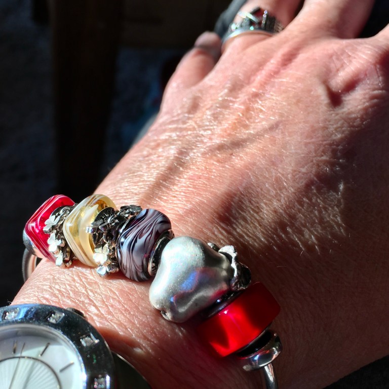 A bangle with all three square candies and Apple, Lucky Moves, Moving On and the only other square glass I have Capitol Hill.