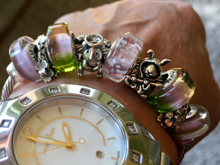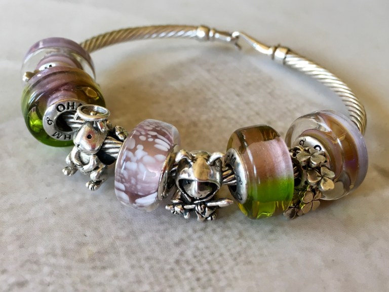 Easter is just over, but I couldn’t resist an Easter bangle with Plant, Moving On, Gouldian, Bunny Angel, Rose Jelly, Bunny Reaper, Gouldian, Lucky Moves and Haze.