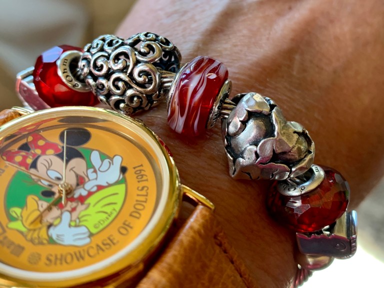 Having a crush on someone is so sweet! A bangle with Kissing first part, Living Red, Love Wirls, Candy Crush, Heart Of Stone, Passion Red and Kissing second part.