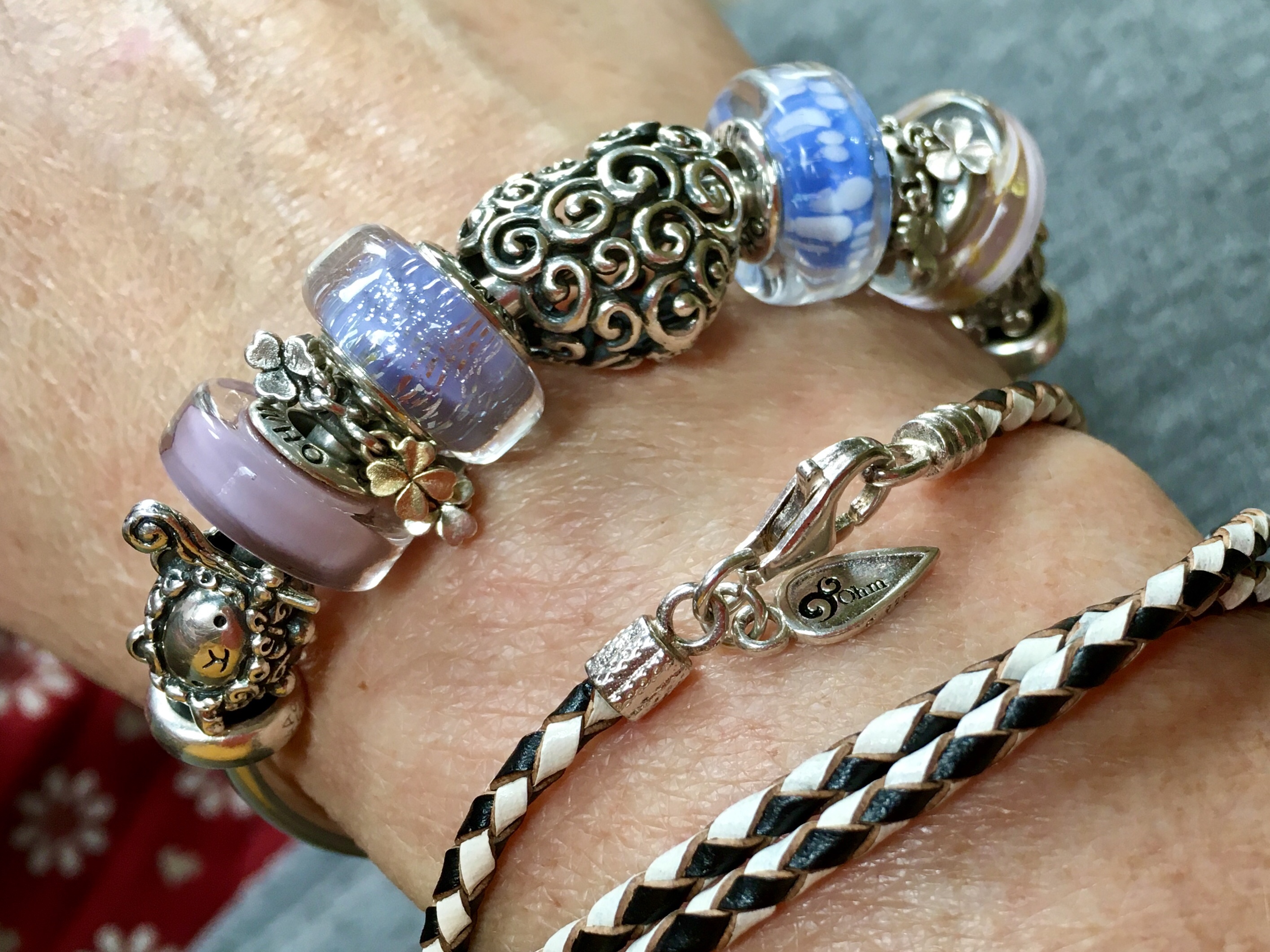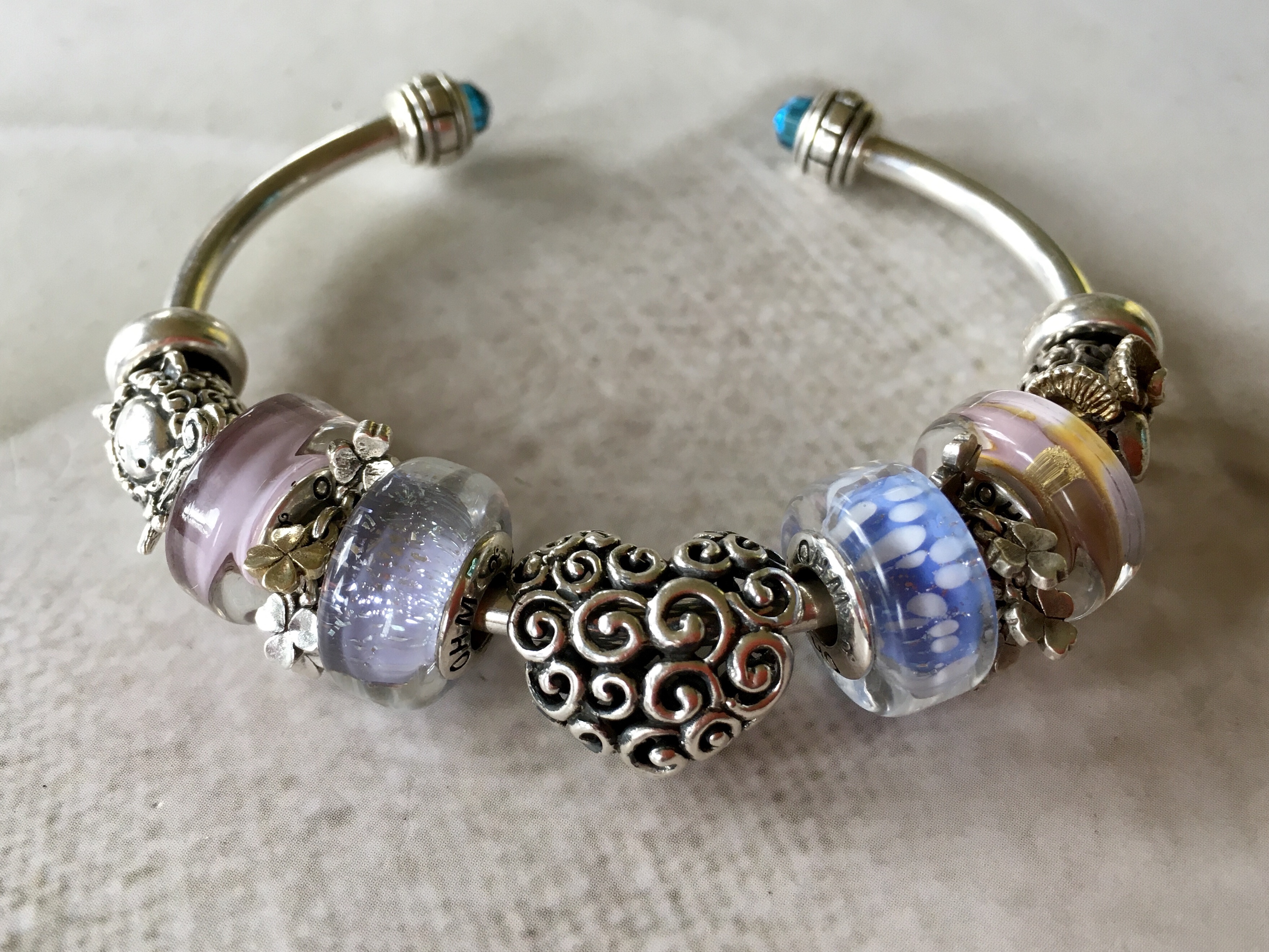 And to finish a bangle with all four Alice beads together on a bangle with Love Grows and two Love Hurts!