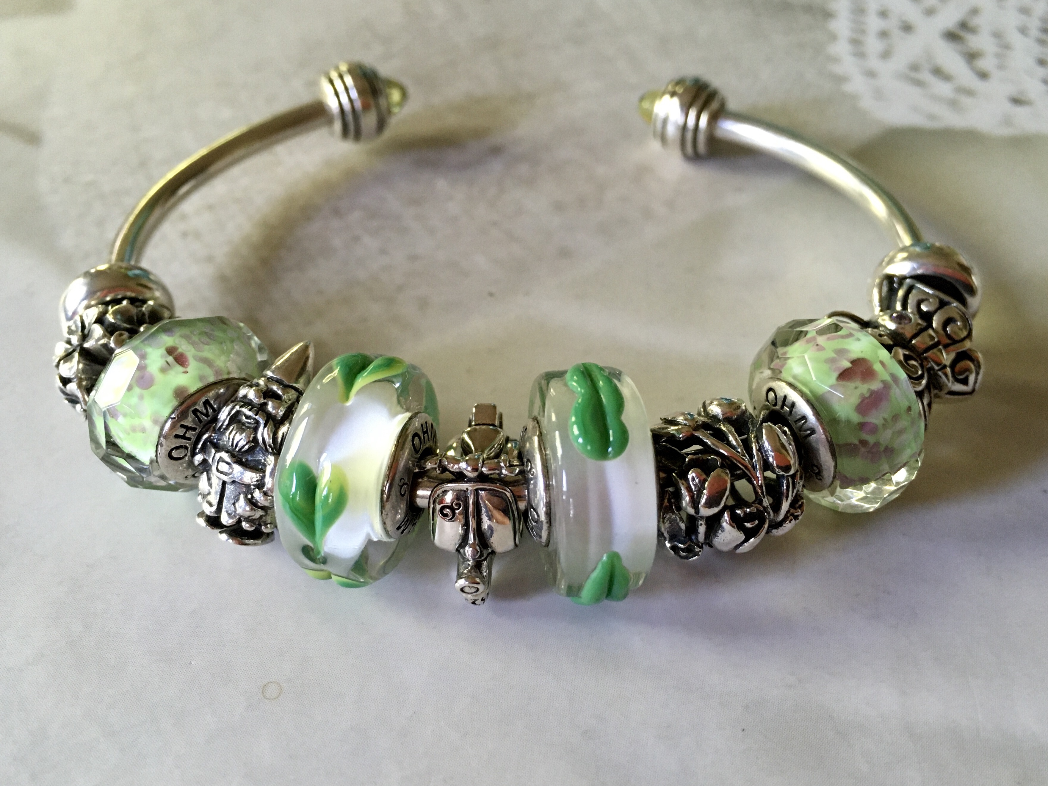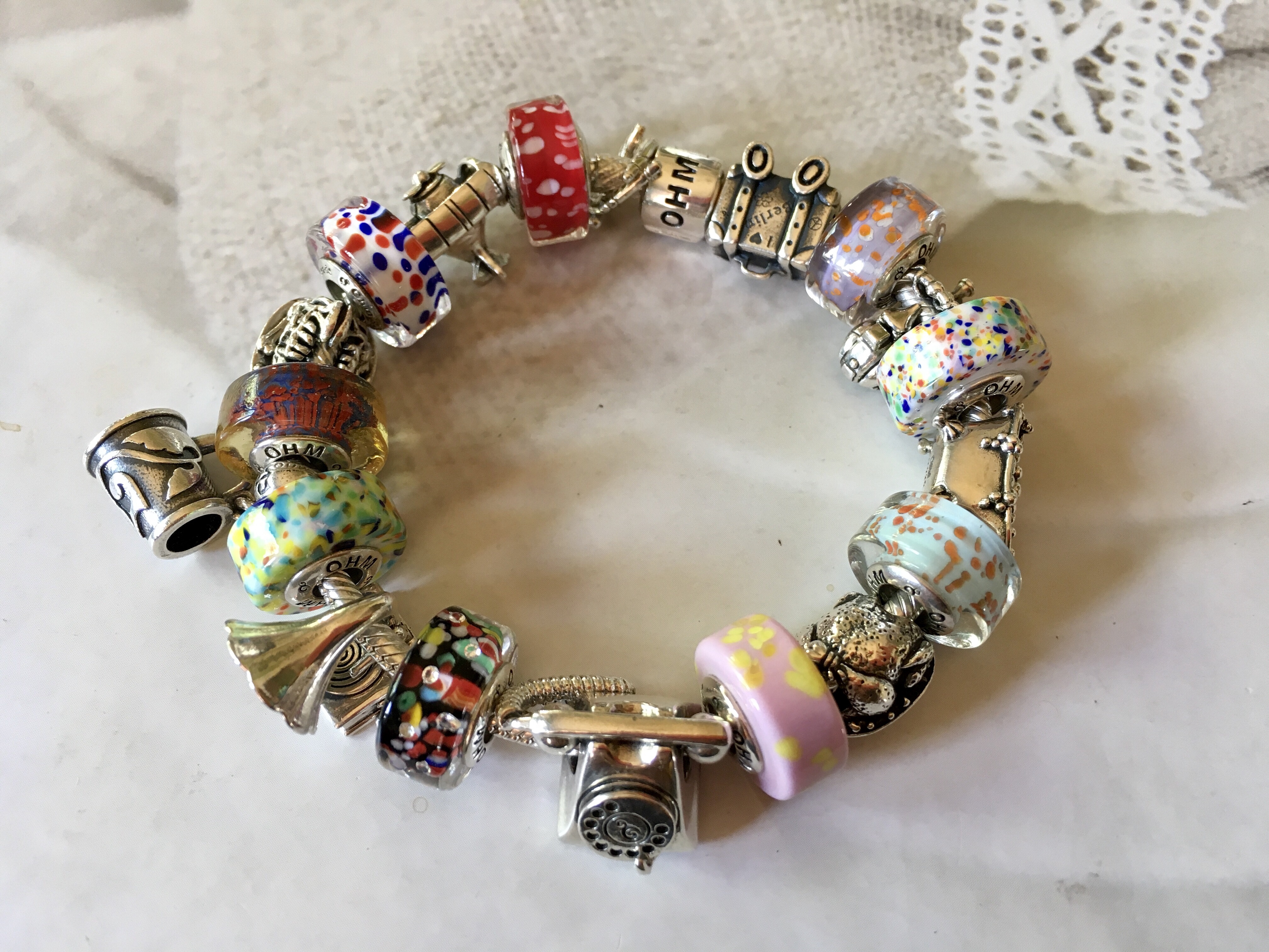 My mailman delivers mail by scooter, so my beadmail usually travels by plane (or truck) and by scooter! So a bangle with OHMnique, Ride Me, Fall In The Lake, Beadmail, Birthday Cake, Biplane and The Next Blooms.