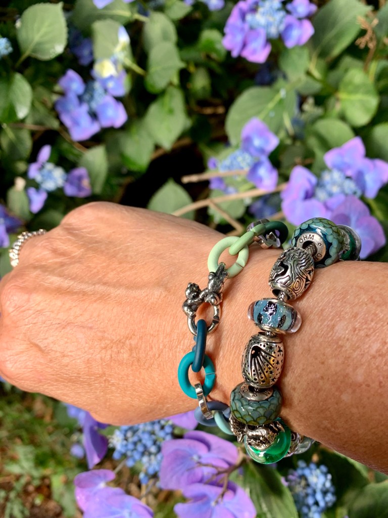 I love to make a full bracelet and I did using the first two TAO silver beads In Process and In Flow! Stacked here with a X-jewellery bracelet.