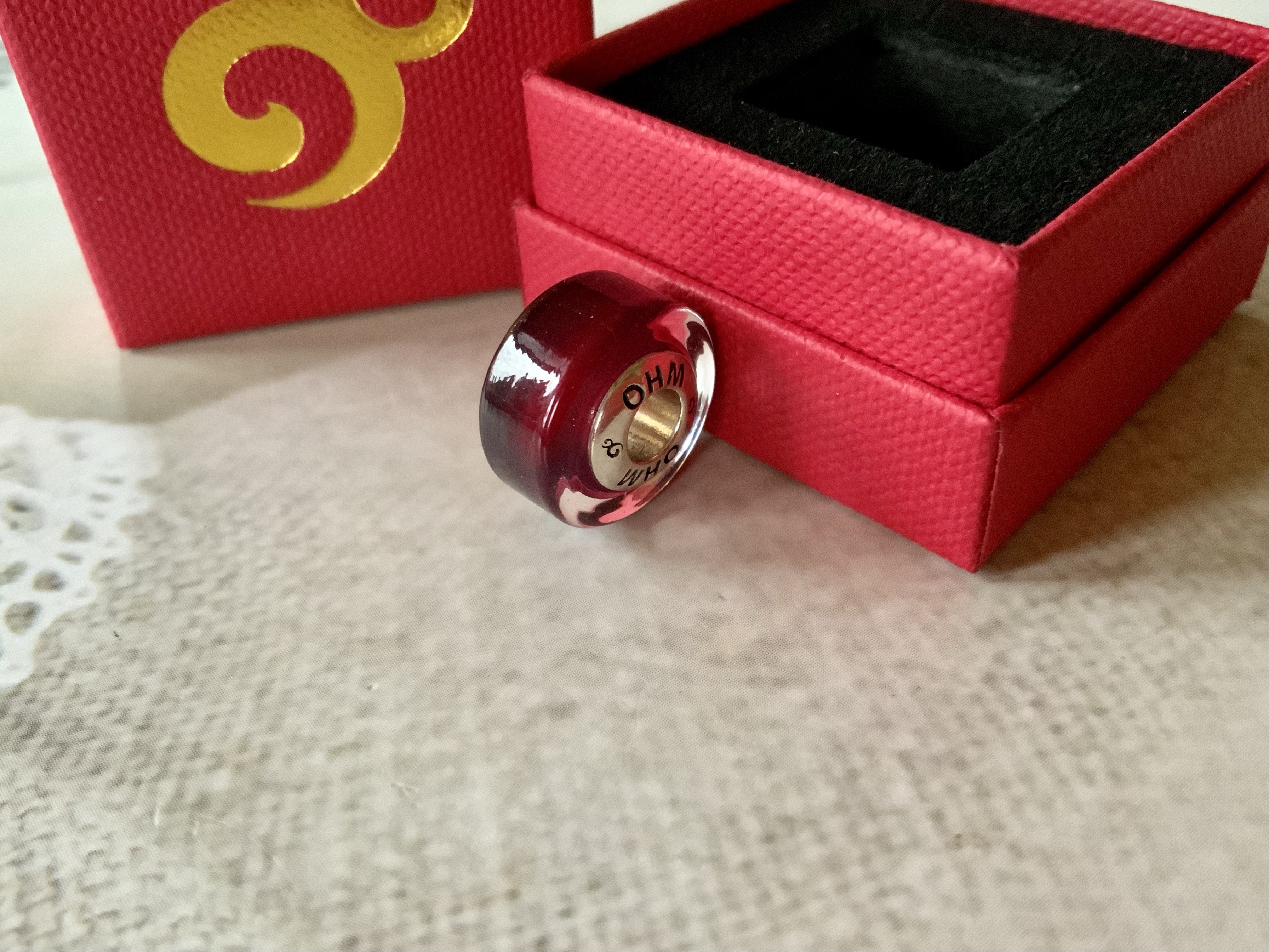 The first glass bead is Break Through! It’s a gorgeous red glass bead with purple lines and flakes of gold.