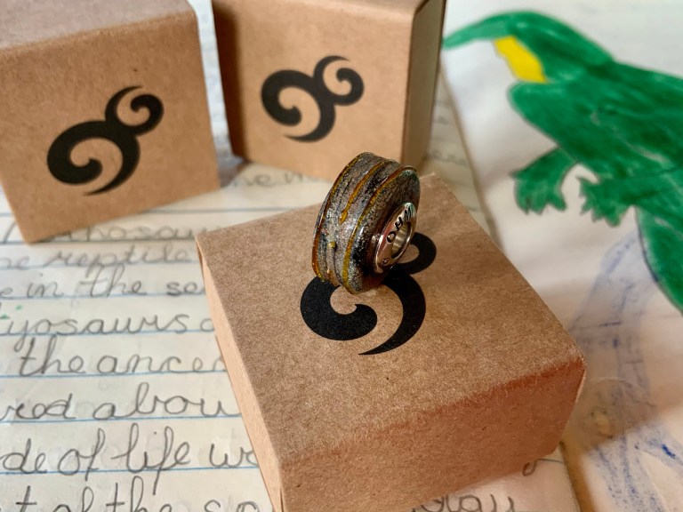 The next glass bead is Gondwana, a darker glass with small strings of glass wrapped around.