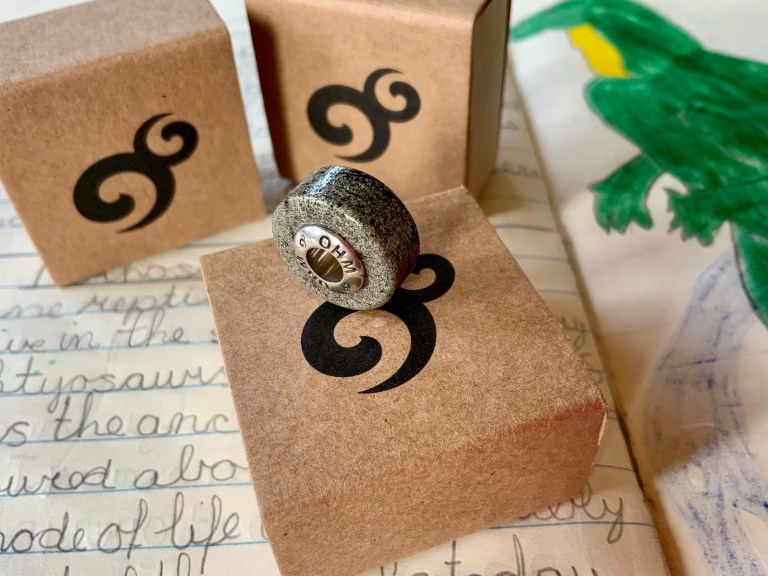 The third glass bead is Pangaea. A grey stone colour with small lines running through.