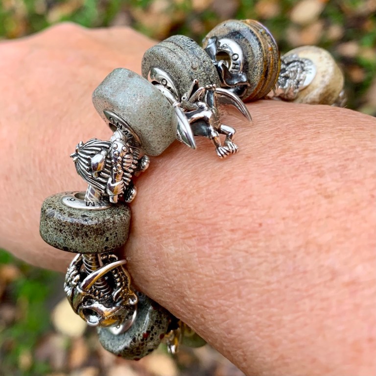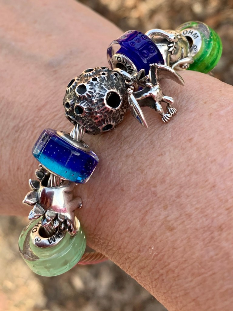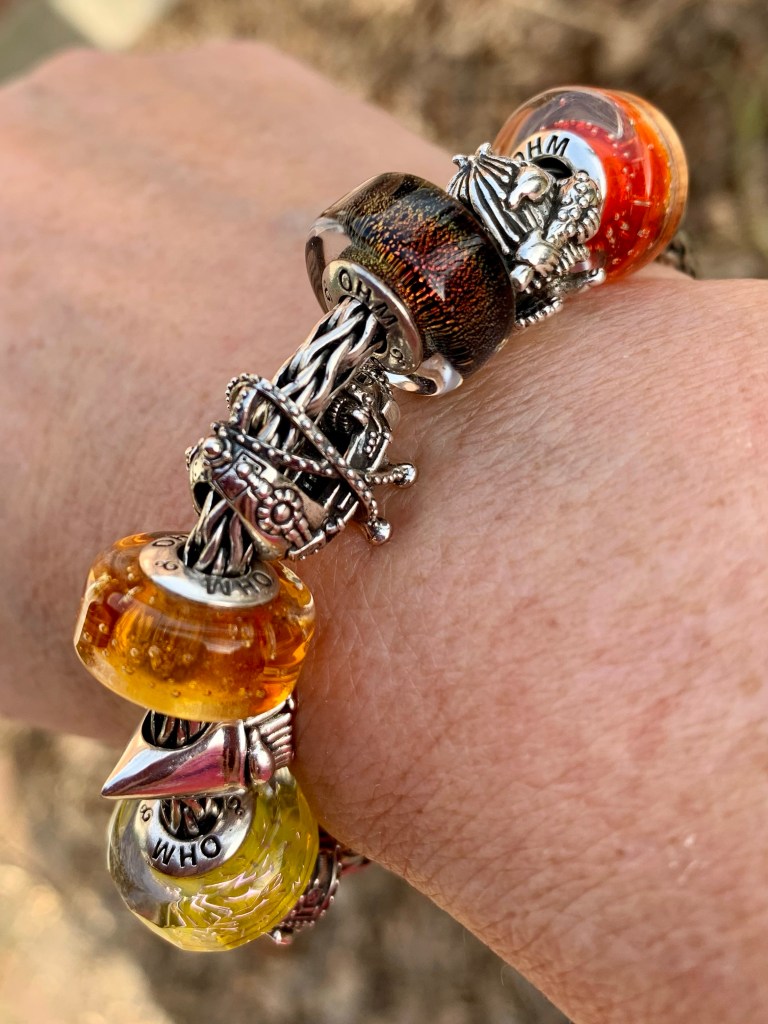 I made a full bracelet with the Rawr Dragon glass Dragon Bone, Dragon Skin and Dragon Blood and a OHMnique. And Luna 2.0, Baby Megalodon and Astrawroid.