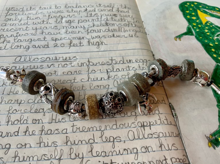 I am taking a closer look at the glass and some of the silver beads released this January. Starring in this blogpost is my old science project about dinosaurs I made in primary school when I lived in Sandwich England.