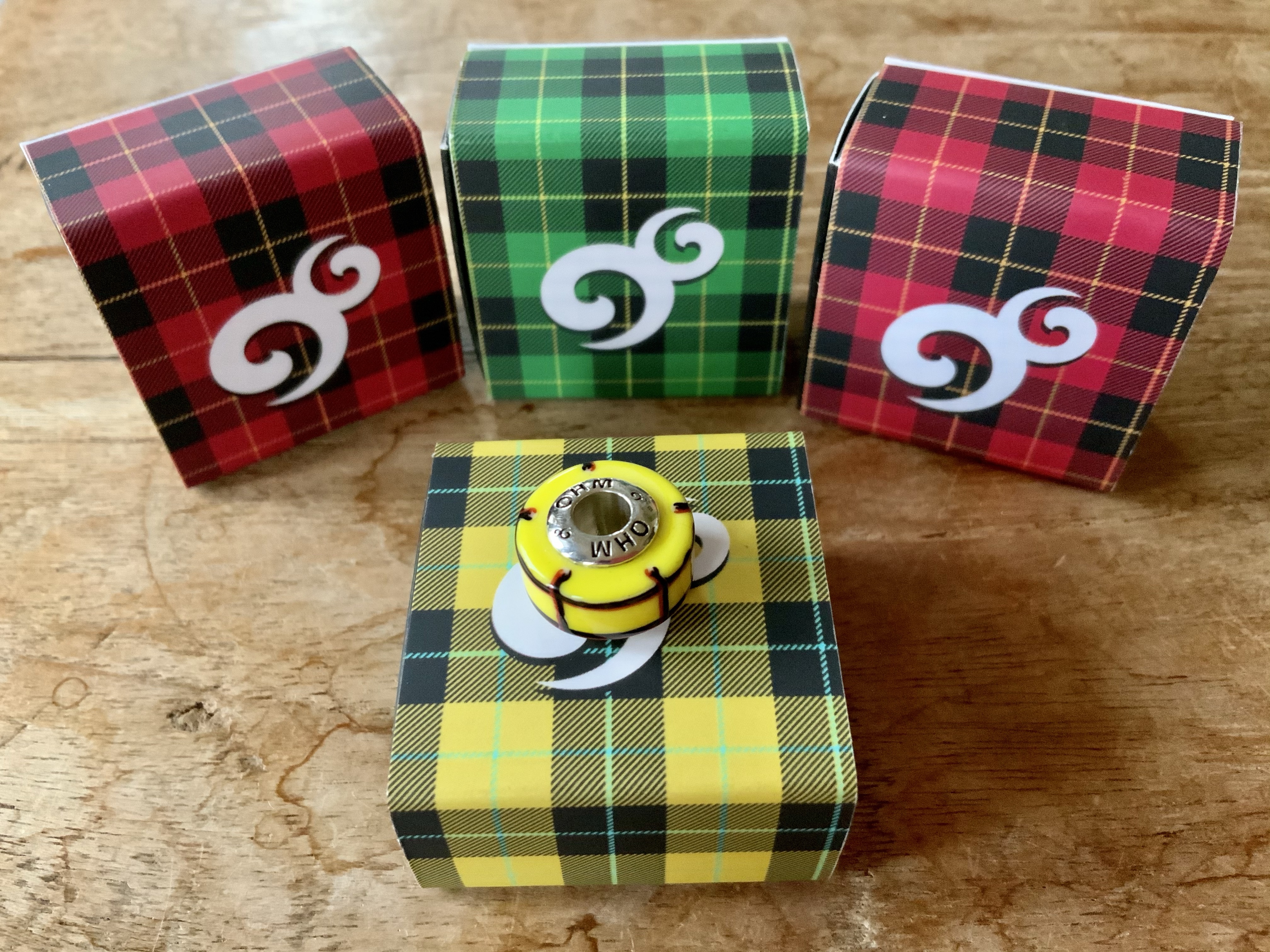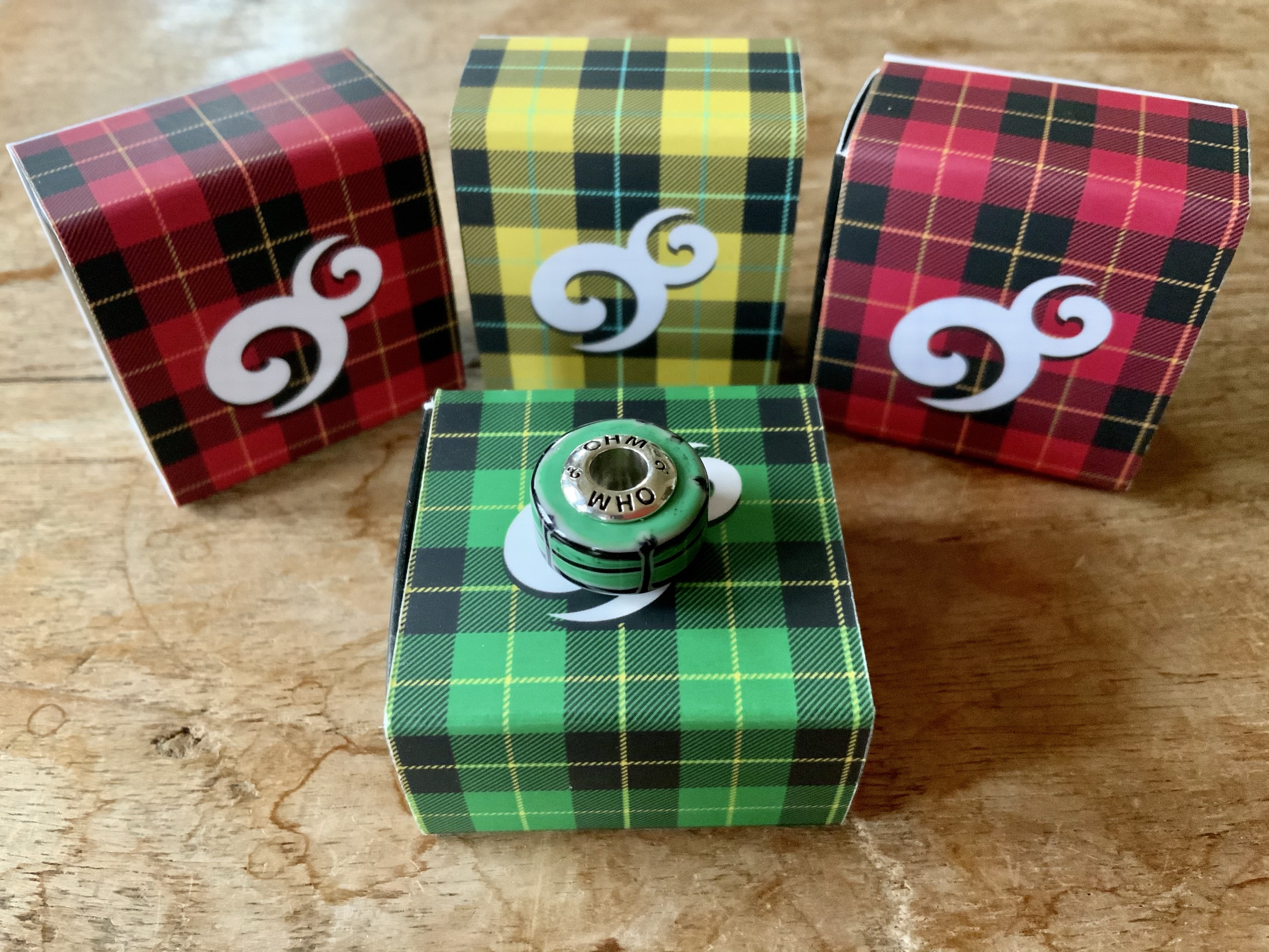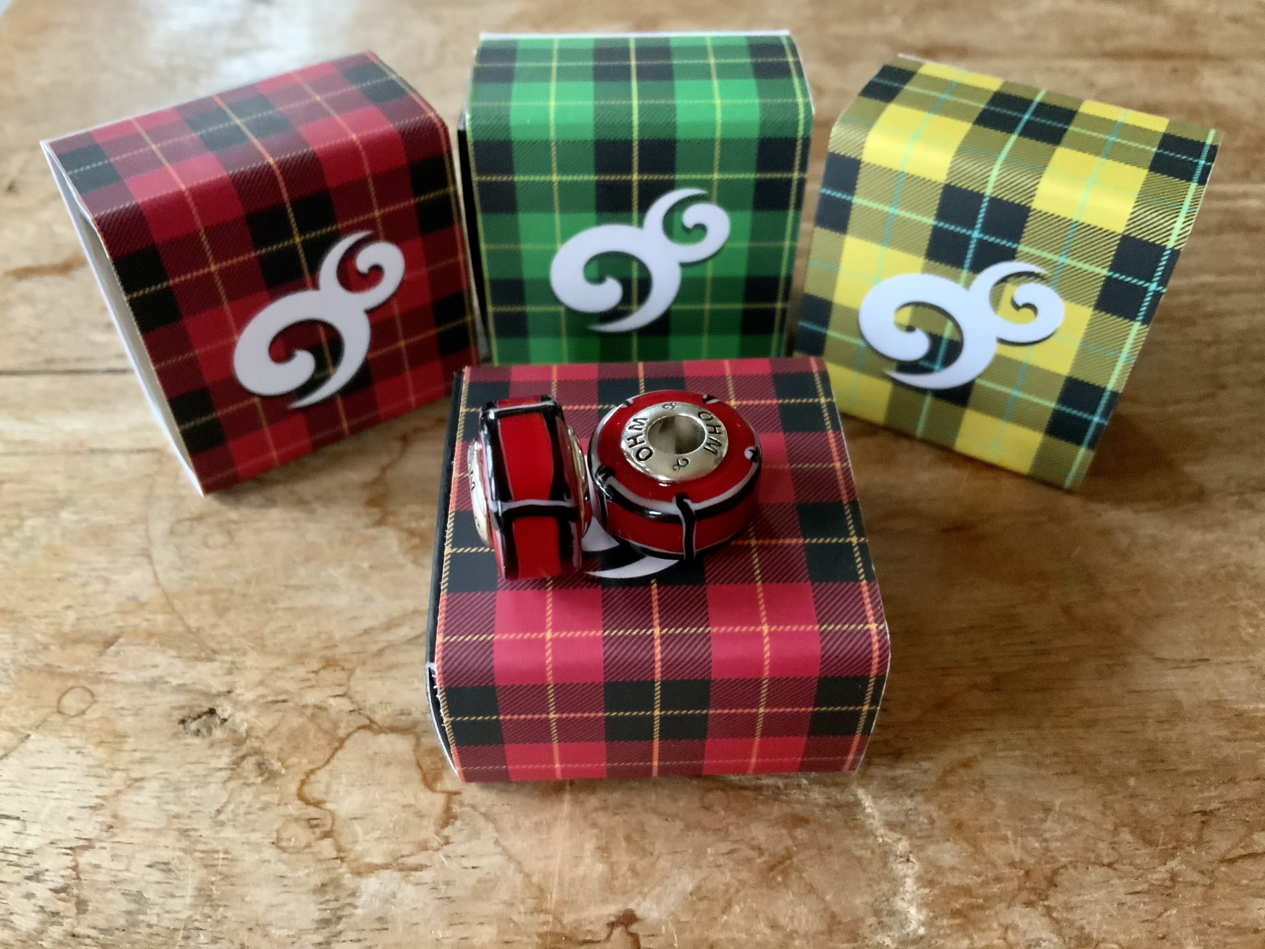 With Patricia’s scottish background and knowledge we picked the paterns that inspired the design for the beads. OHM made this into three very fun and contemporary glass designs!