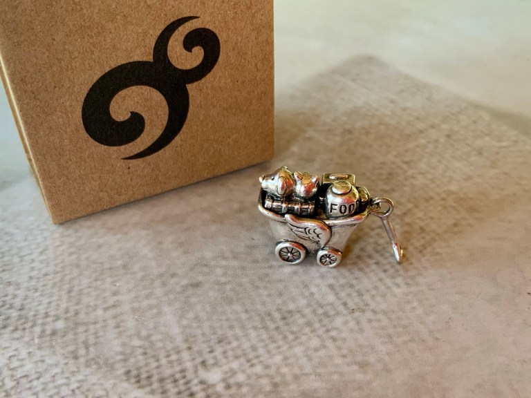And this is Paws Of Love with lab assistants Maria Helena G. Giacomelli and Susy Gamarra. The bead is a carriage with an articulating handle holding rescue animals dog, cat, food, treats and a first aid kit!