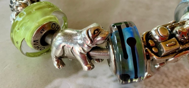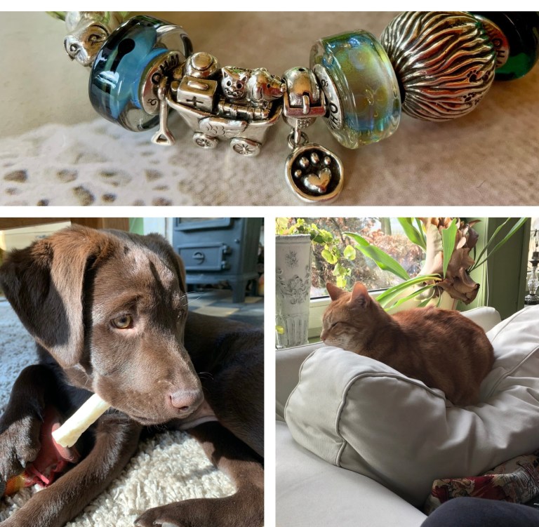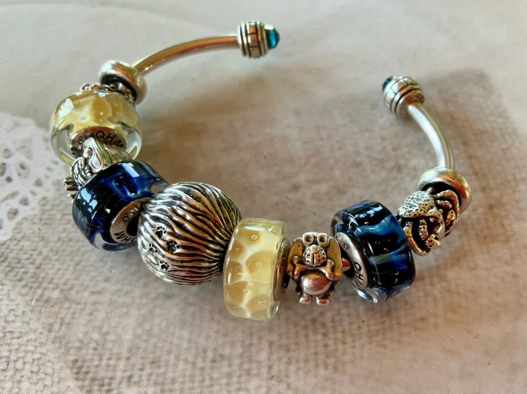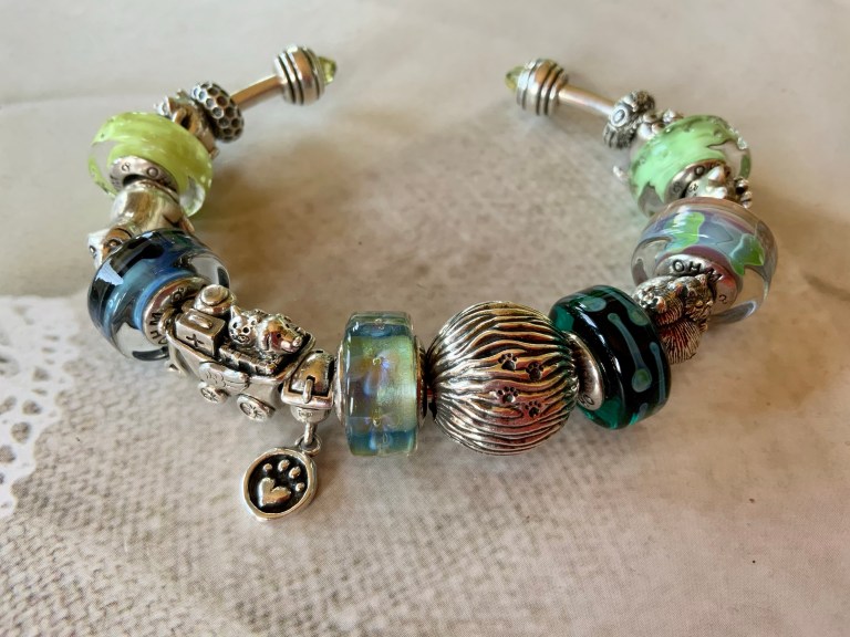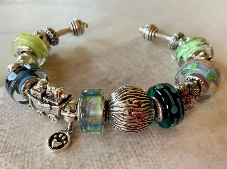 Combining Memories In Sand and Paws Of Love on this bangle, a tribute to the six cats and three dogs that accompanied me on my life’s journey!