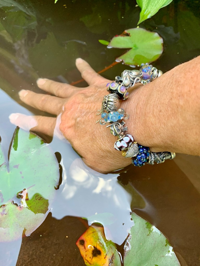 This bangle feels like the colourfull ocean where bubbles rise to the top and the octopus and fish are playing with the visiting diver! With Ogerbeads, Muano and OHM.