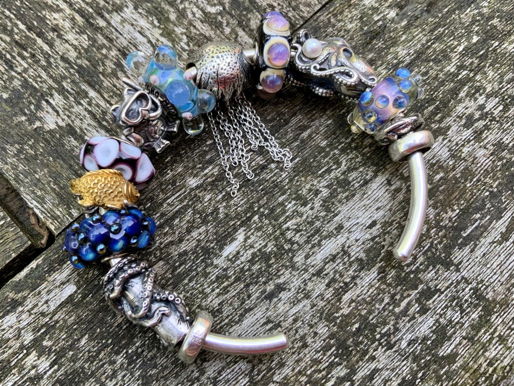 Octopus is diving together with OHM Argh to find the tresure! A bangle with OHM beads and Trollbeads.