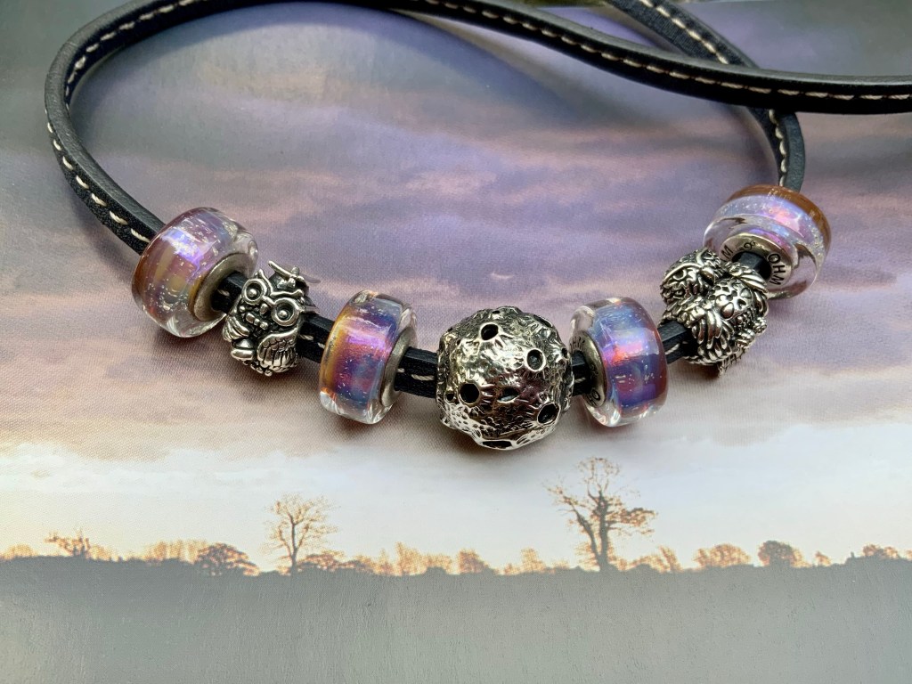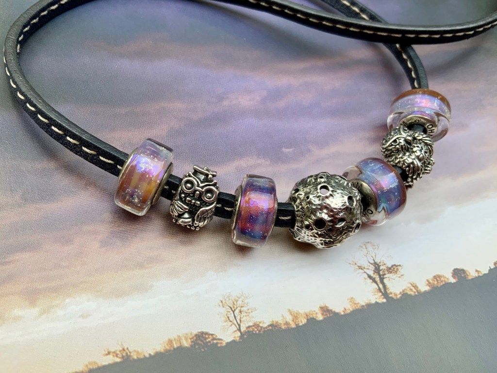 You can see owls flying just as the daylight is fading into beautiful colours! Whooo Has Class is meeting up with Who Dead in the dazzeling sunset! Navy Whip leather bracelet with Luna 2.0 and four Dreamscape.