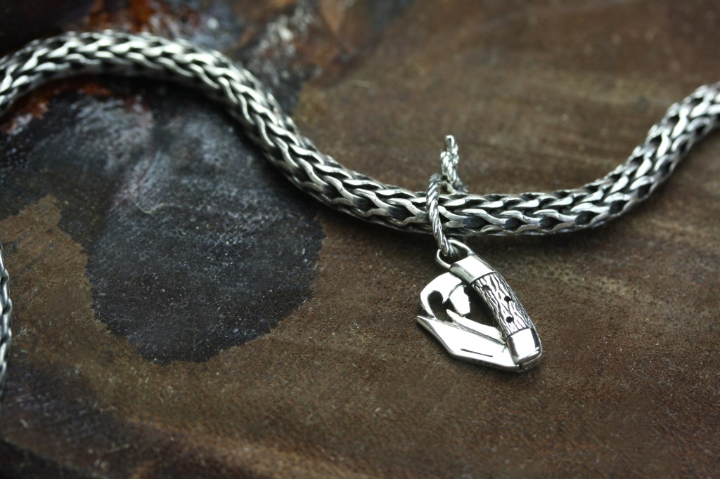 OHM is interested in your preparedness. Remind yourself with this beautifully crafted little camper or scout knife bead — with the four traditional tools — which hangs from a scout-required bowline knot. You and your bracelet are hereby authorized to tote the magnificent little POCKET KNIFE anywhere that pleases you. And you don’t have to keep others at arm’s length around you; you’ll want to show off every minute detail.