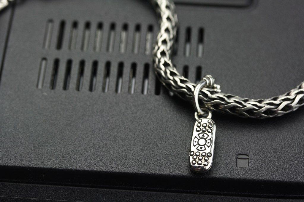OHM has created this elegant universal remote bead to hang beautifully on your bracelet. You always know where it is.