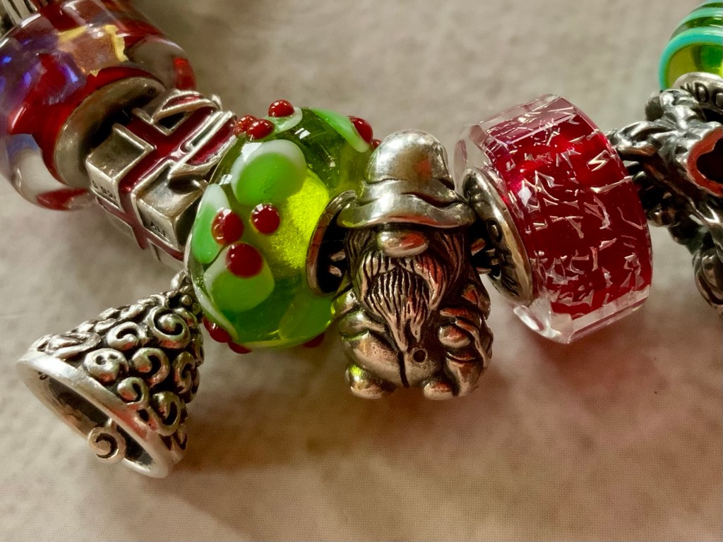 But ofcourse Julenisse is most happy with other Christmas beads! A traditional red and green bracelet with RedBaliFrog, OHM, Trollbeads, Pandora, Bella Fascini and Argostudio.